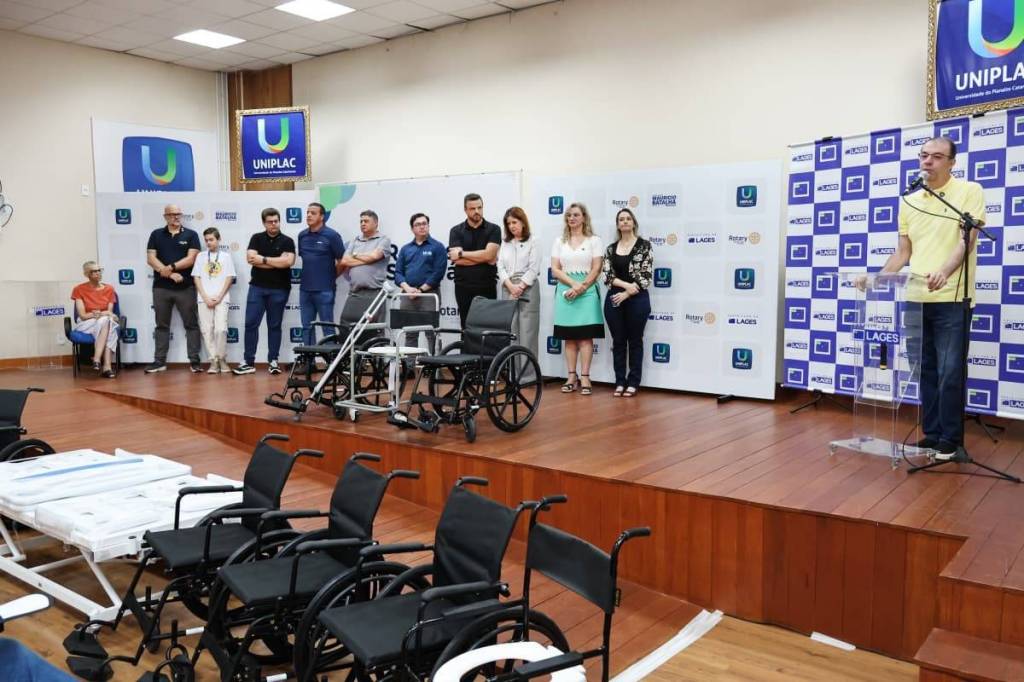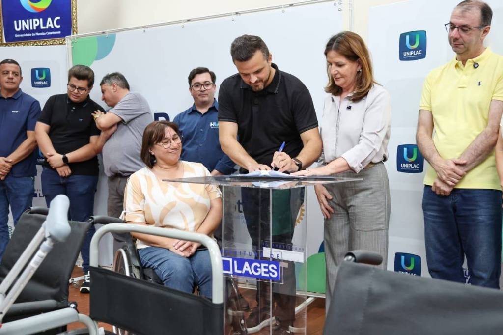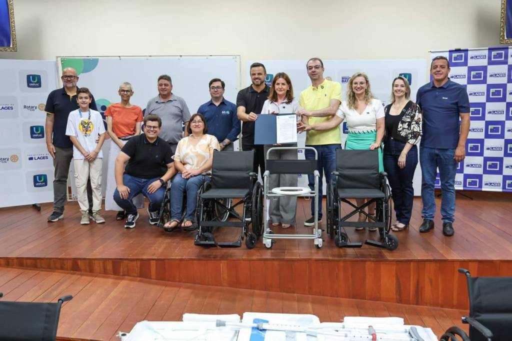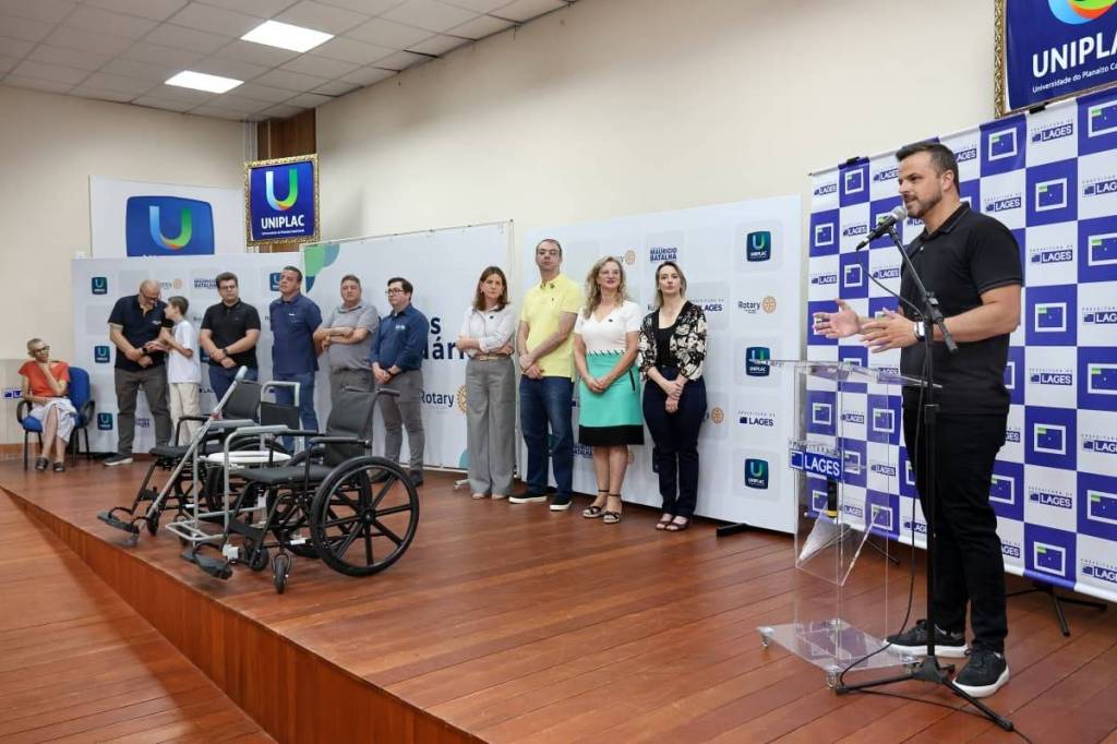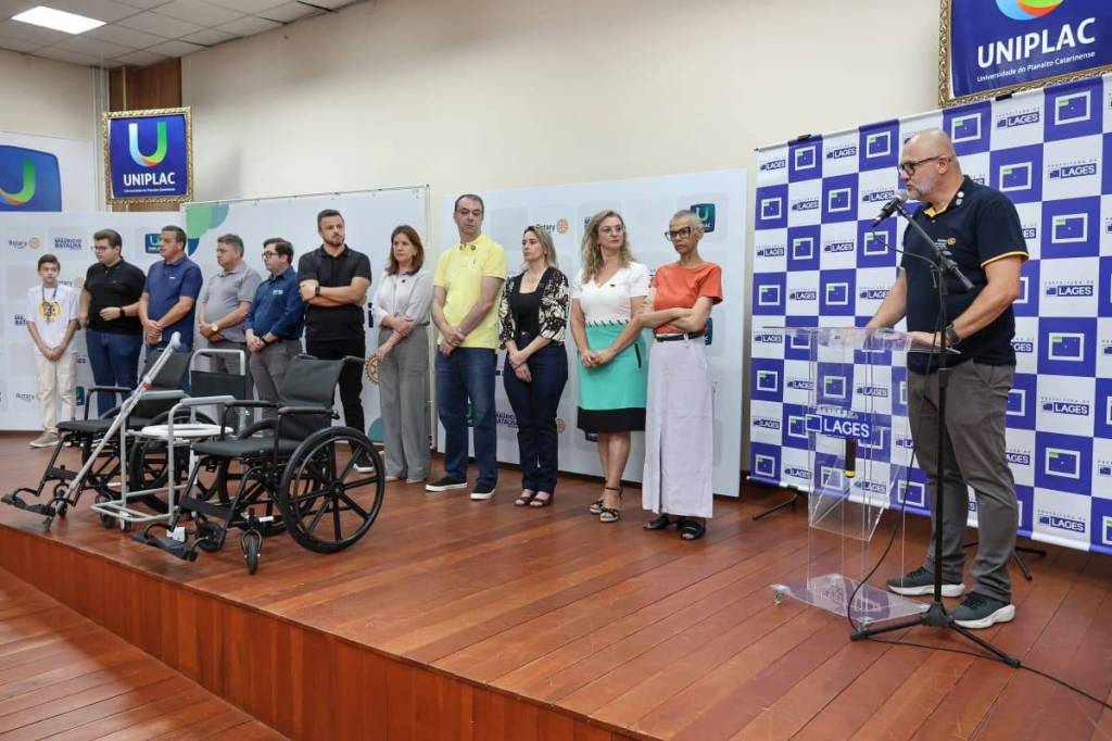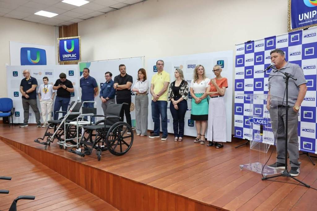 Foi realizada nesta terça-feira, 27 de janeiro, na Universidade do Planalto Catarinense (UNIPLAC), a entrega oficial dos equipamentos do projeto Rodas Solidárias, iniciativa voltada à ampliação do acesso da população a equipamentos de apoio à saúde e à mobilidade em Lages.