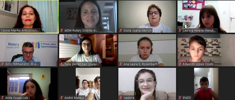 Na data de 11/12/2020 foi realizada a primeira reunião Distrital virtual de Rota Kids do Distrito 4740, com a participação do Governador Fernando Júnior Ambrosio e sua esposa, companheira Fabiana. As coordenadoras dos quatro clubes de Rota Kids do Distrito, companheira Márcia do Rota Kids de Anita Garibaldi, companheira Cássia de União da Vitória, companheira Itália de São Joaquim e a companheira Dulce, coordenadora do Rota Kids de Concórdia e Presidente da Subcomissão de  Rota Kids do Distrito. Além dos Presidentes e outros integrantes Kidianos dos quatro clubes. Durante a reunião foram apresentados os projetos e ações e um pouco da história de cada clube. Queremos registrar um agradecimento especial aos Rotary Clubs de Anita Garibaldi, União da Vitória, São Joaquim e Concórdia, por acreditarem nas crianças e por patrocinarem os clubes de Rota Kids. Nossa gratidão para as coordernadoras, por toda a dedicação e trabalho desenvolvido. Parabéns a todos os Kidianos pelo tempo dedicado aos projetos e ações sociais e por serem exemplos a serem seguidos por outras crianças. Aos Presidentes dos demais clubes de Rotary do Distrito, deixamos o desafio para fundação de mais clubes de Rota Kids.