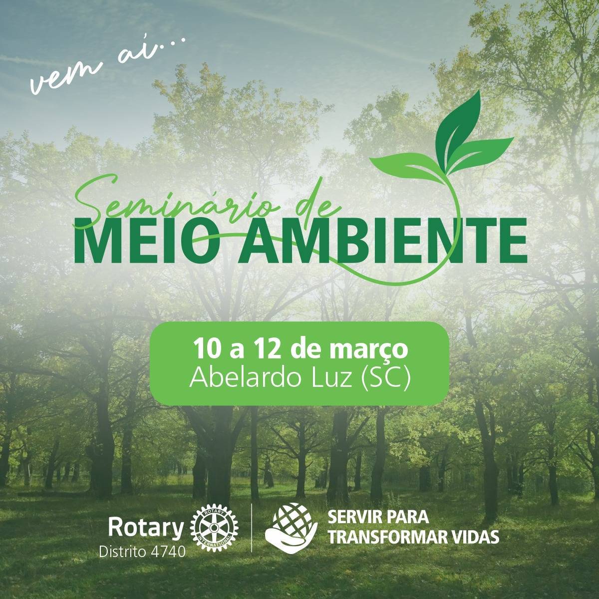 Para apresentar para a comunidade o projeto “Plante esta ideia” - que visa plantar 200 mil mudas nativas no Distrito 4740 em três anos - e sensibilizar sobre a importância de preservar o meio ambiente, nos dias 10, 11 e 12 de março ocorre o Seminário de Meio Ambiente, que será realizado em Abelardo Luz (SC).