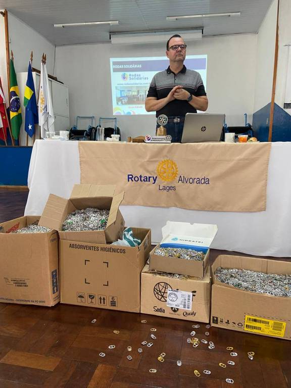 Em recente investimento, o Rotary Alvorada fez a conversão deste material doado, na aquisição de uma cadeira de rodas para acrescentar ainda mais ao banco ortopédico do projeto Rodas Solidárias.