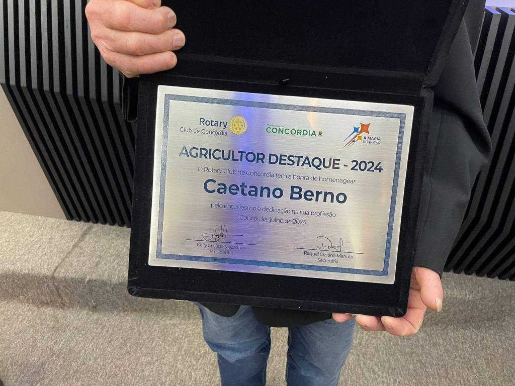 Este ano Caetano Berno, foi o agricultor destaque 2024 indicado pelo AGROCON - Associação de Engenheiros Agrônomos de Concórdia. Já o motorista destaque 2024, indicado pelo SETCOM – Sindicato das Empresas de Transporte de Cargas do Oeste e Meio Oeste Catarinense, foi o Senhor Juarez Machado.