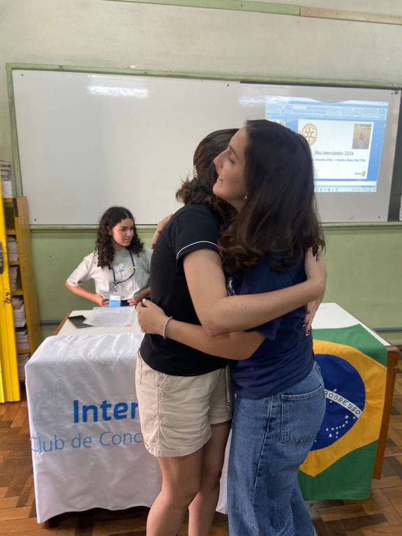 Helena relatou sua vivência em Hamilton, Nova Iorque, destacando as experiências que teve com suas famílias anfitriãs e novas amizades. Ela detalhou aspectos do cotidiano americano, incluindo o período escolar e o inverno característico da região. Além disso, ela respondeu a dúvidas dos associados interessados em participar de programas de intercâmbio e enfatizou a importância de acolher os novos intercambistas. O encontro foi marcado por momentos descontraídos e inspiradores, com Helena compartilhando a reflexão: “Você é feito de partezinhas das pessoas que você já amou.”