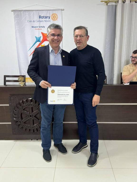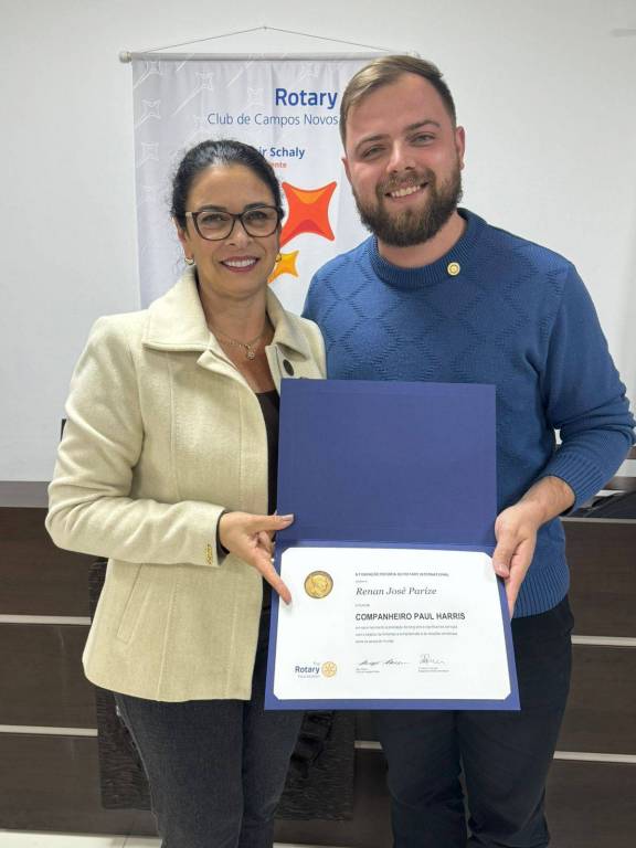 Os companheiros merecedores desta noite foram Renan Parize, diretor da comissão do Banco Ortopédico e Marli Becker presidente 2023-24 deste clube, ainda a SiCOOB Credicampos, parceira do Rotary por ser uma empresa cidadã onde seu presidente Otávio Henrique Tessaro foi agraciado com um título Paul Harris.