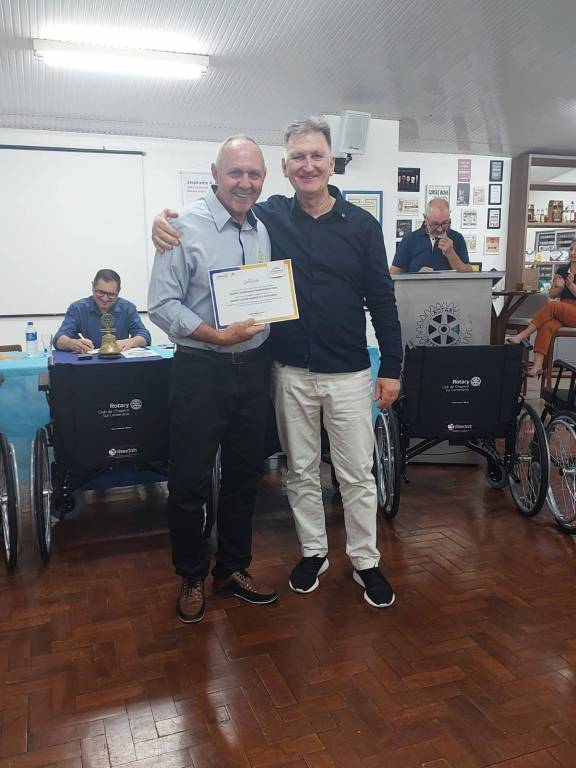 Na reunião ordinária do dia 19 de agosto, foi enttregue os certificados das Empresas Sociais que contribuiram com o Rotary Club de Chapecó Sul Centenário e seus projetos na gestão 2023-2024: Vildri Corretora de Seguros Ltda, Cachaçaria Rodeio do Herval Ltda, Dal Pont Otimização Industrial Ltda, Celuppi e Associados Contabilidade Ltda, Arcus Indústria Gráfica Ltda, Santa Clara Vidros, Alumínios e Assessórios Ltda e Moura Comércio de Alimentos Ltda.