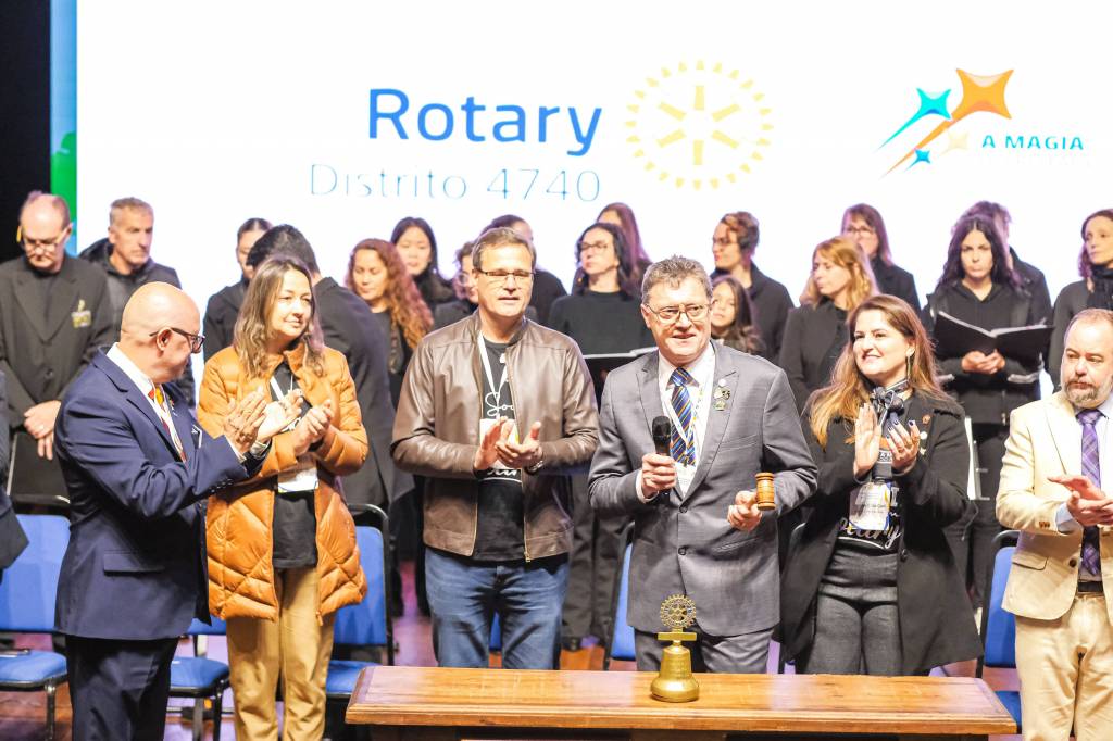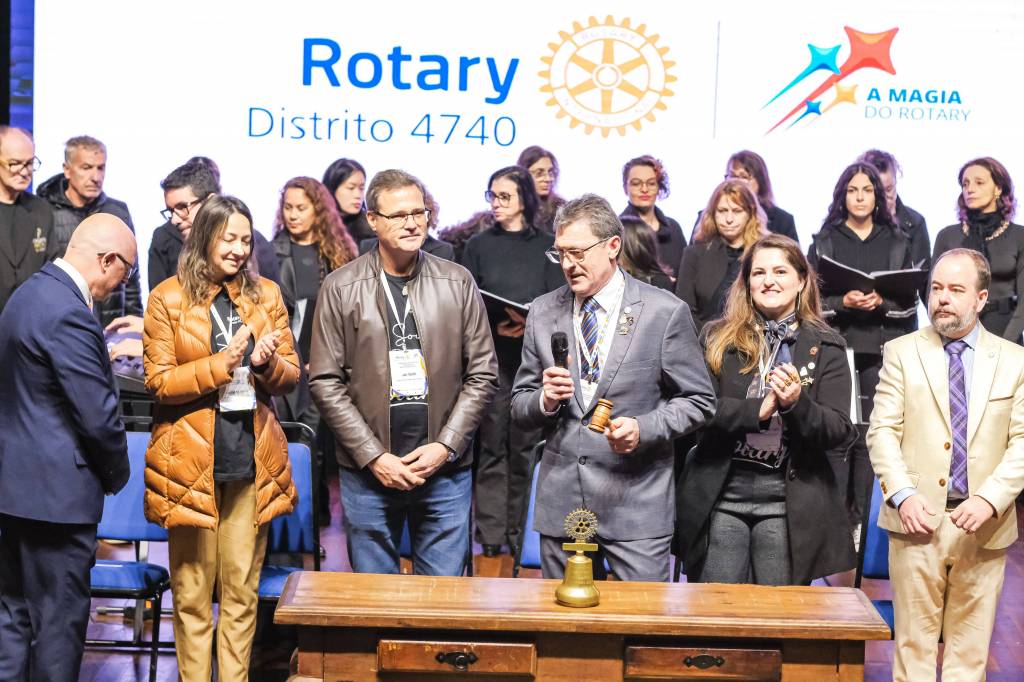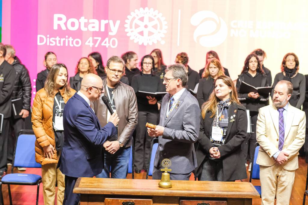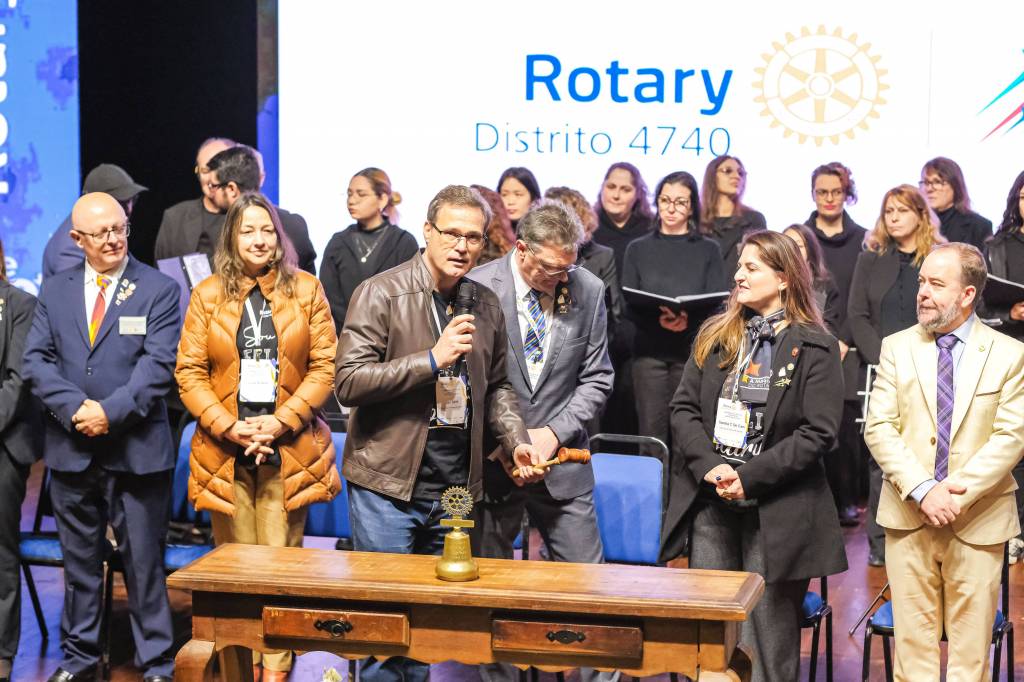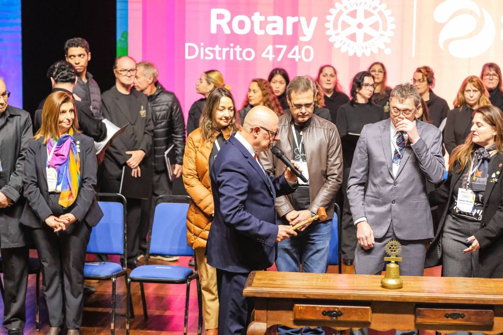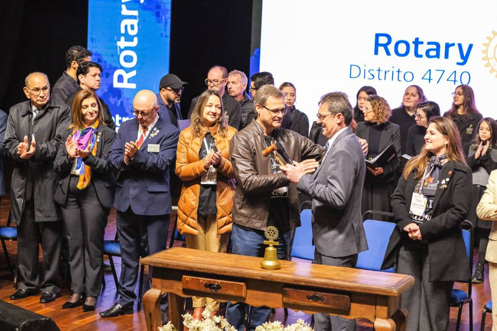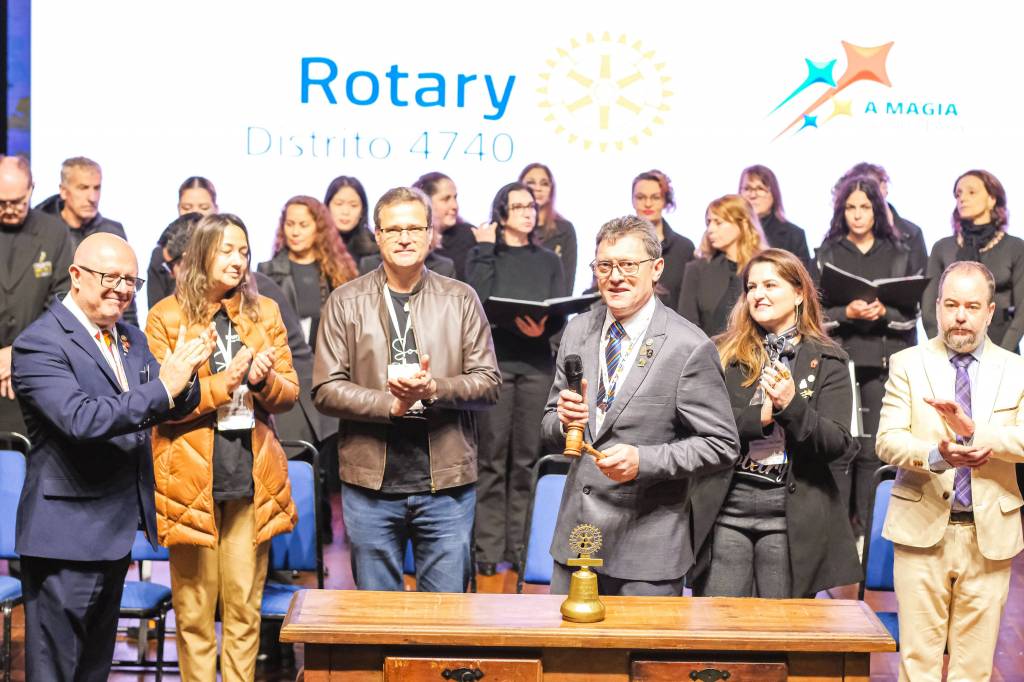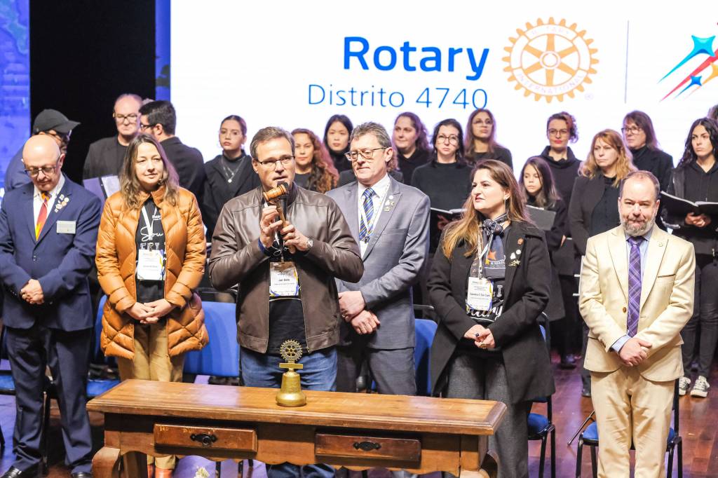 O novo ano rotário iniciou ainda na segunda-feira, dia 1º de julho, mas foi no último sábado (6), durante a 44ª Assembleia Distrital do Distrito 4740 de Rotary International, que o governador 2023-24 Marcus Vinicius Ferreira D’Agostini passou o sino e o malhete para o governador 2024-25 Cledimar Lisberto De Carli.