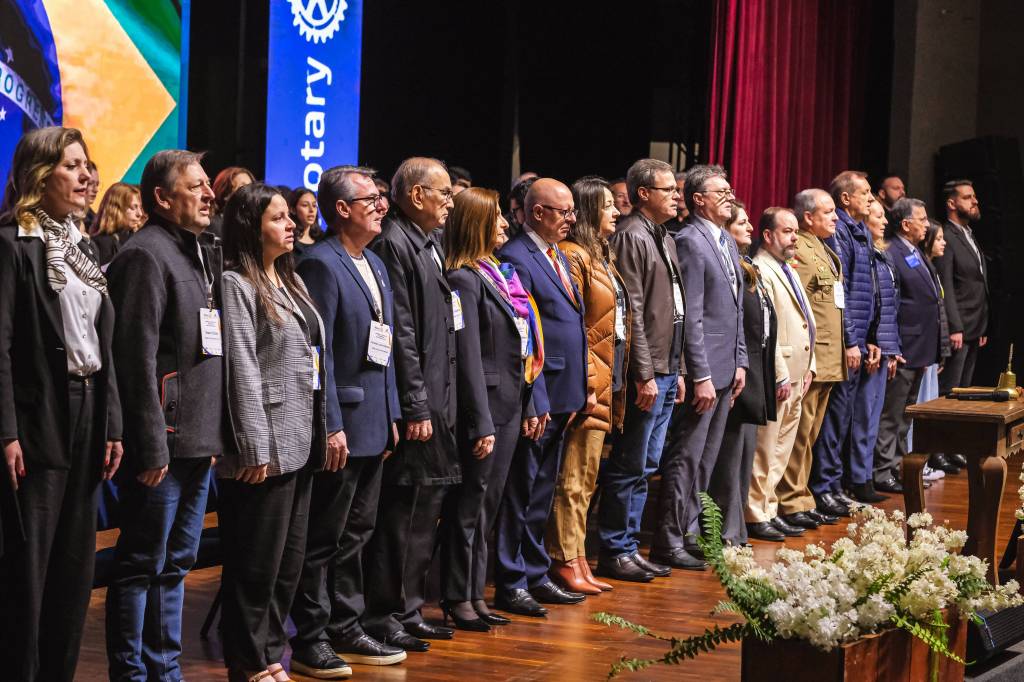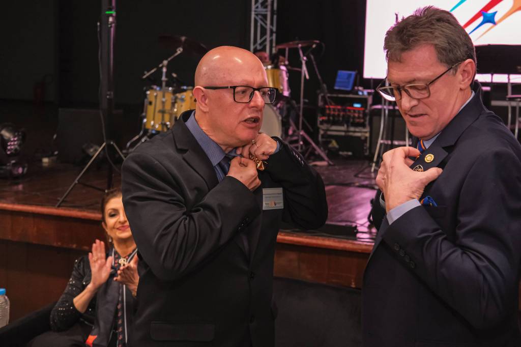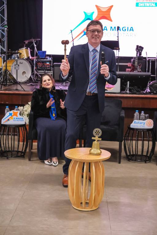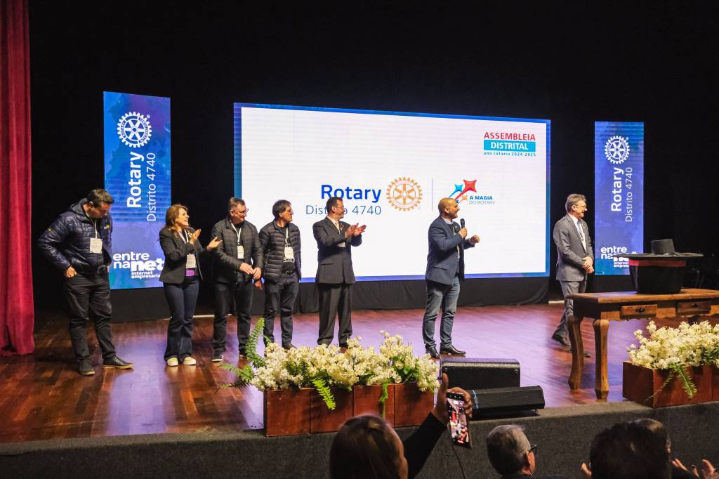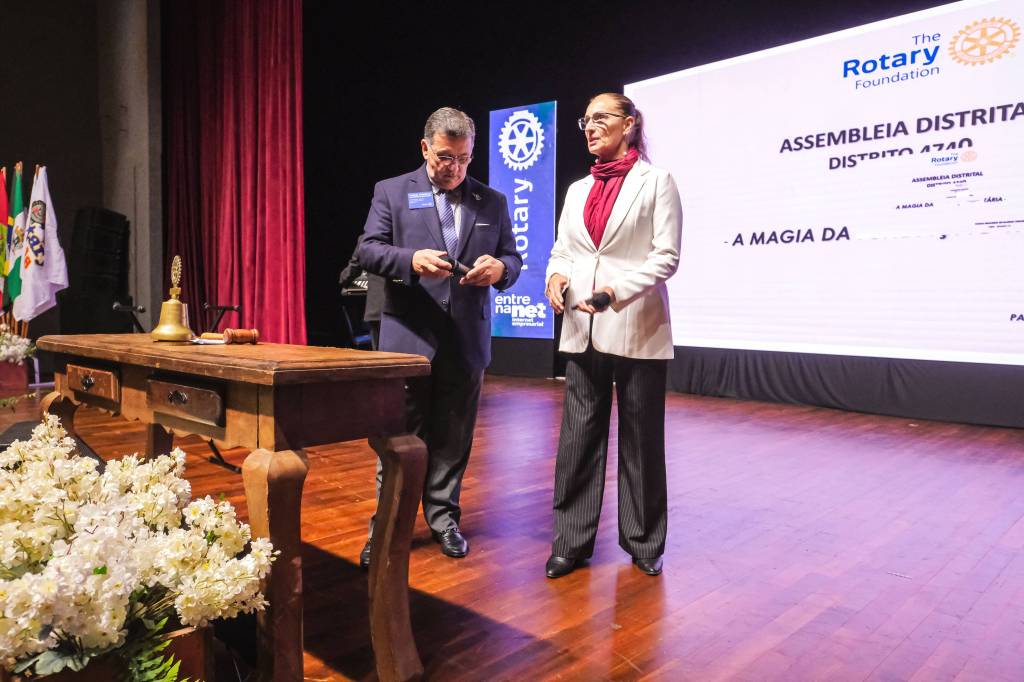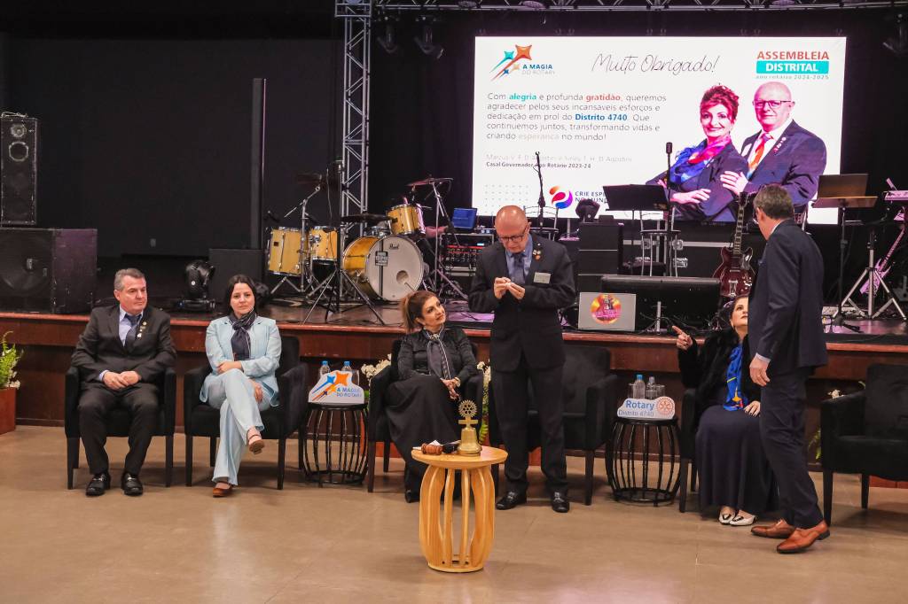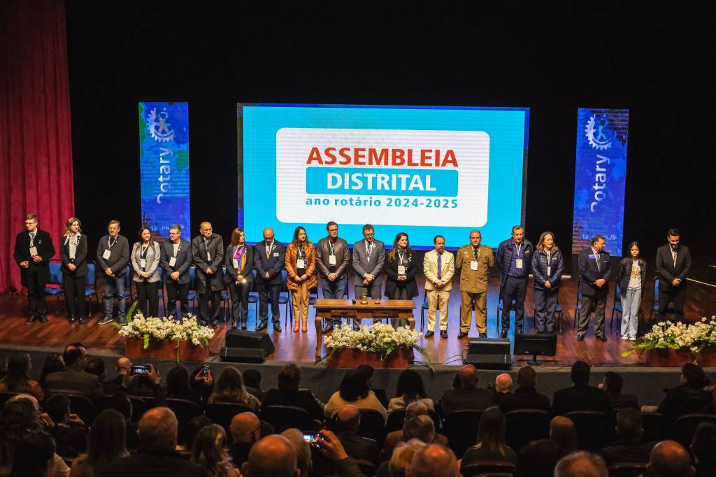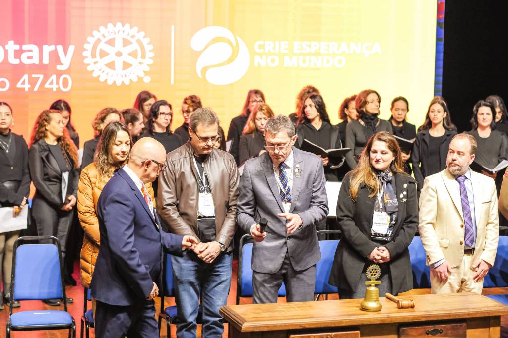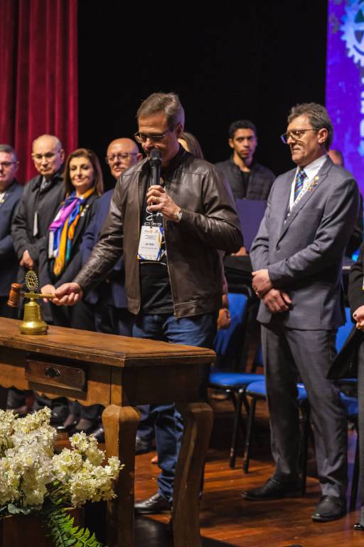 O novo ano rotário iniciou ainda na segunda-feira, dia 1º de julho, mas foi no último sábado (6), durante a 44ª Assembleia Distrital do Distrito 4740 de Rotary International, que o governador 2023-24 Marcus Vinicius Ferreira D’Agostini passou o sino e o malhete para o governador 2024-25 Cledimar Lisberto De Carli.