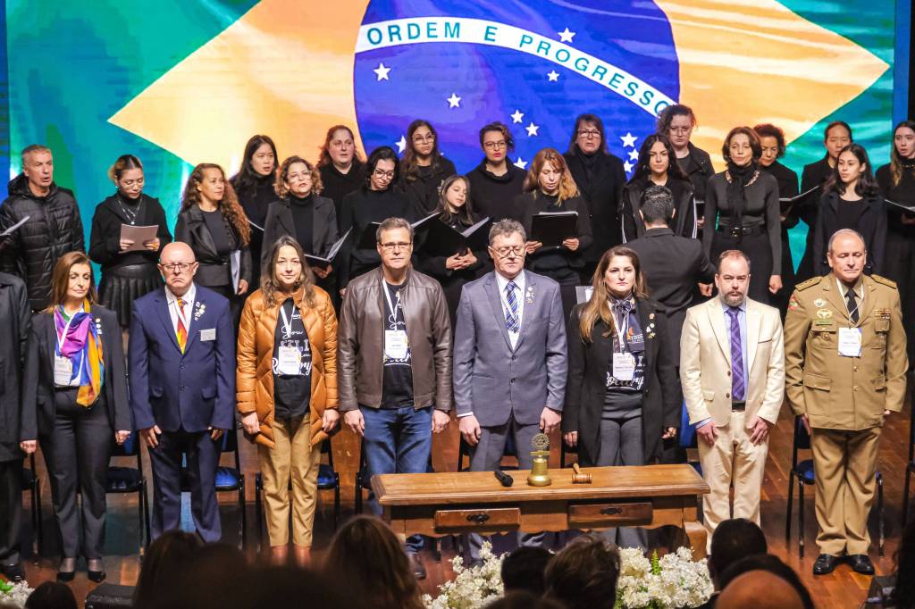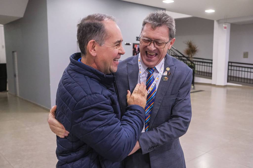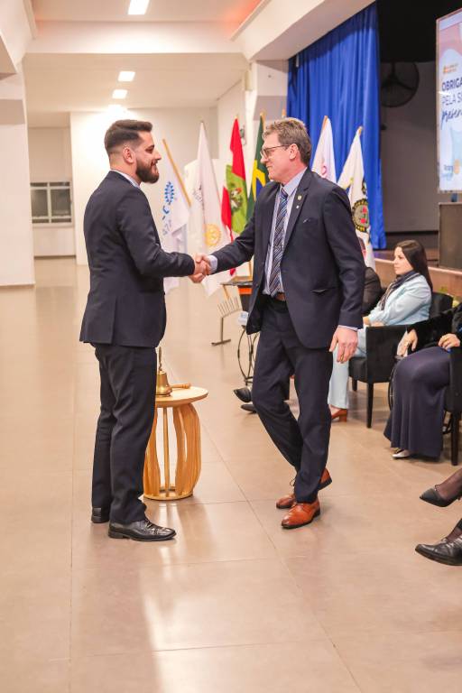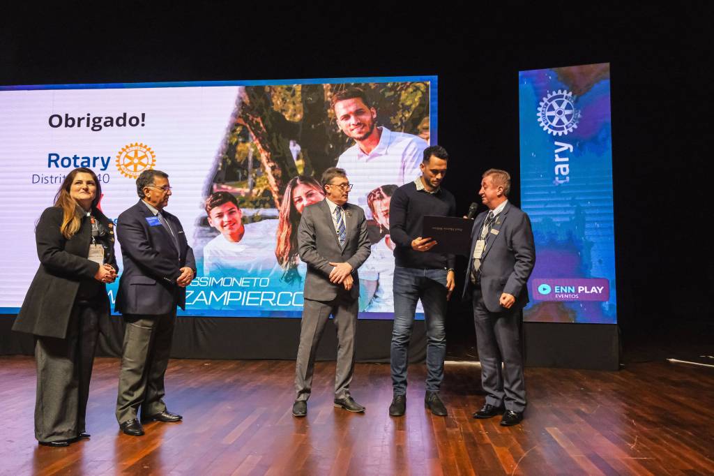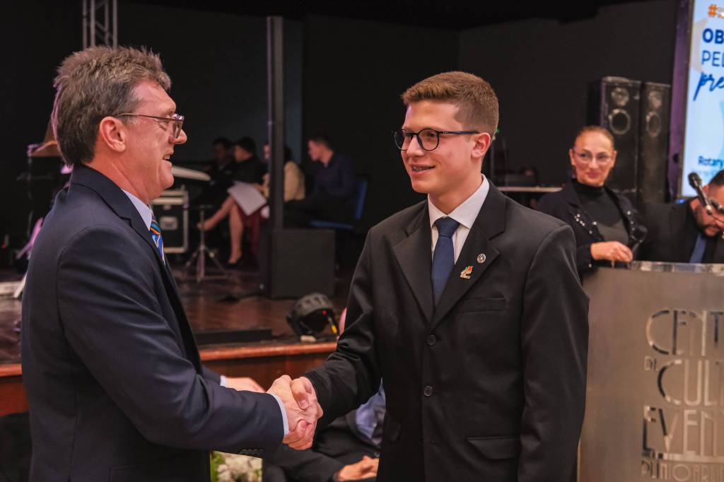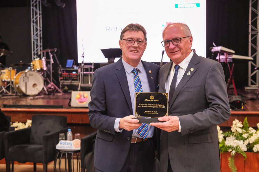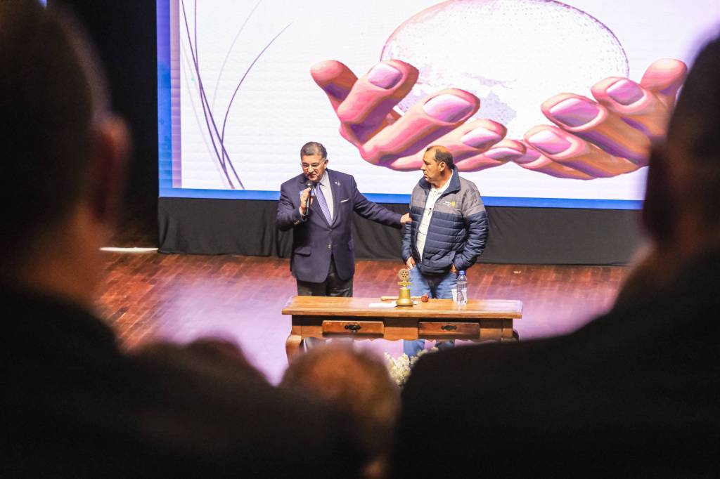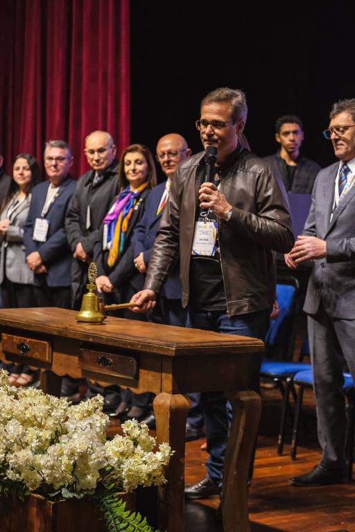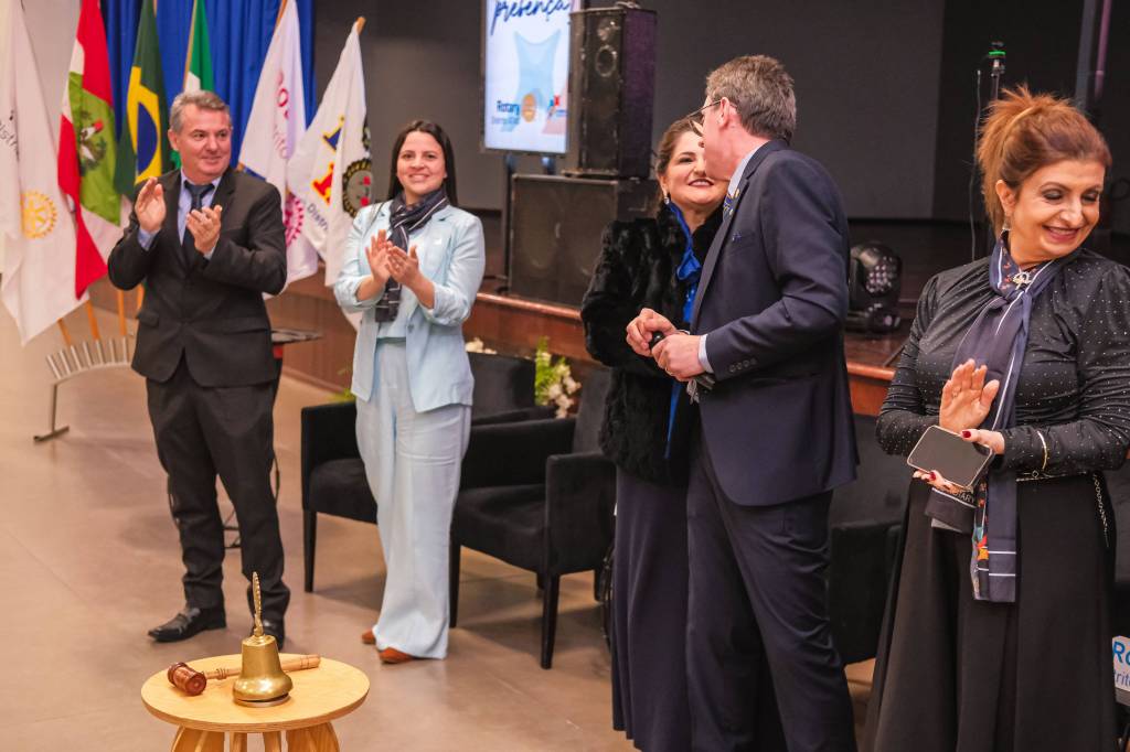 O novo ano rotário iniciou ainda na segunda-feira, dia 1º de julho, mas foi no último sábado (6), durante a 44ª Assembleia Distrital do Distrito 4740 de Rotary International, que o governador 2023-24 Marcus Vinicius Ferreira D’Agostini passou o sino e o malhete para o governador 2024-25 Cledimar Lisberto De Carli.