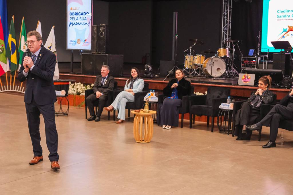 Família rotária, autoridades, lideranças locais e convidados participaram do evento de posse do empresário chapecoense, que ocorreu no Centro de Eventos Plínio Arlindo de Nês, em Chapecó/SC, e reuniu cerca de 500 pessoas.