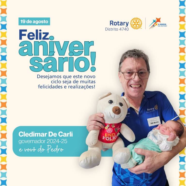O Rotary Club Chapecó São Cristóvão e Rota Kids desejam neste dia muitas felicidade ao nosso Governador Cledimar De Carli.