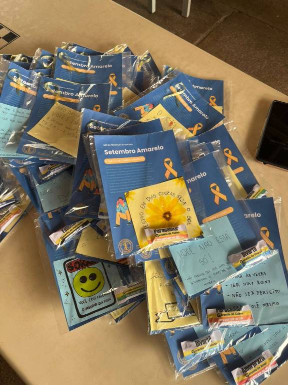 No último sábado, 14 de setembro de 2024, o Interact Club de Concórdia realizou o projeto “Pacotinhos de Esperança” em celebração ao Setembro Amarelo. A ação teve como objetivo promover a importância da ajuda ao próximo e discutir a prevenção ao suicídio. Os jovens do clube criaram e distribuíram kits contendo um panfleto informativo sobre o Setembro Amarelo, um doce e um bilhete personalizado por um membro do clube com uma mensagem de apoio e carinho. Durante o dia na feira artesanal, também oferecemos abraços, adicionando um toque de afeto à comunidade.