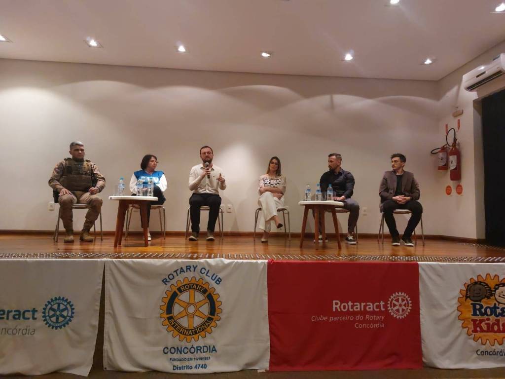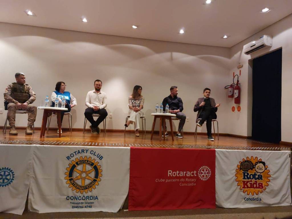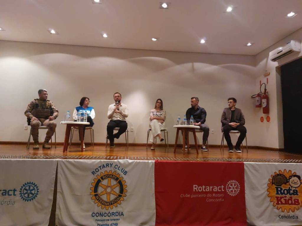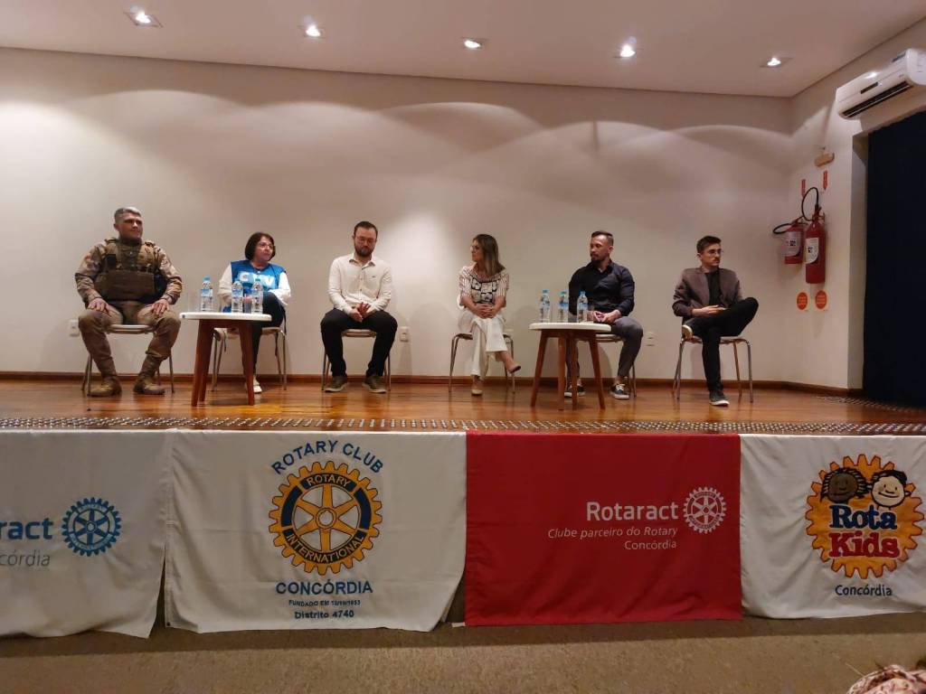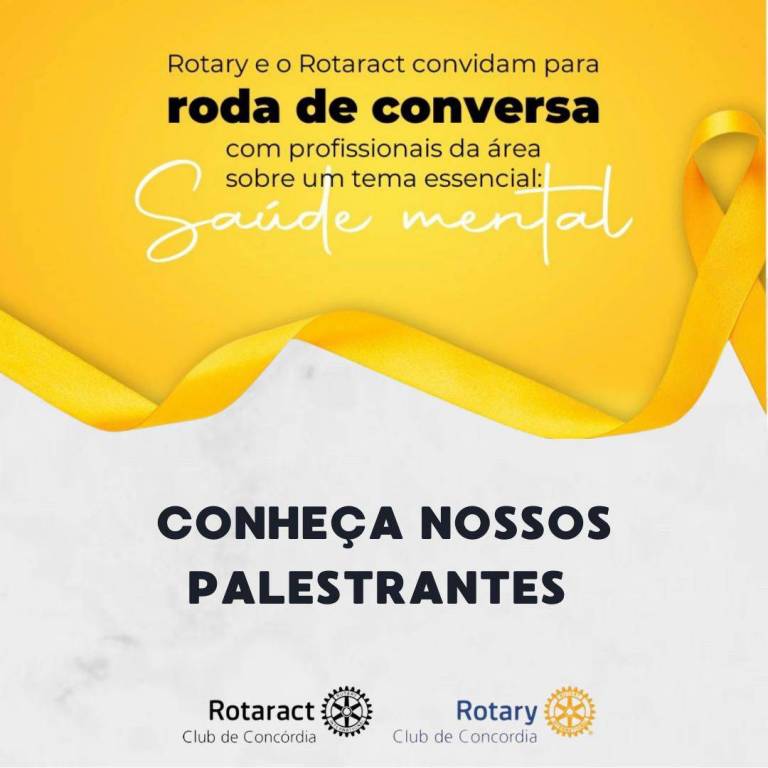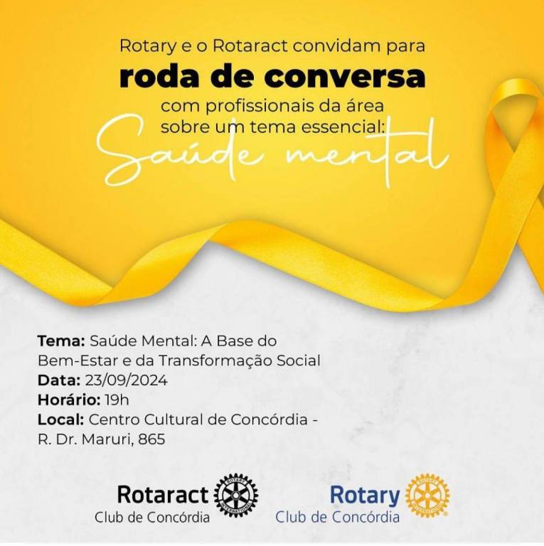 O Rotary e o Rotaract de Concórdia realizaram no dia 23/09/2024 as 19:00, um momento muito especial, onde foi proporcionado a toda a comunidade de Concórdia uma roda de conversa com profissionais de diversas áreas a fins, sobre saúde mental, tema esse essencial para o nosso bem- estar, esse momento aconteceu no centro cultural e contou com a presença de profissionais da área de nutrição, educador fisíco/personal, psicólogo, represetante do CVV Concórdia, bombeiro voluntário e médico geriátra. Momento preparado com muito carinho para todos onde foi possível compartilhar conhecimento e discutir a importância do cuidado com a saúde mental. O evento foi um sucesso e de grande valia para todos que  estavam presente.
