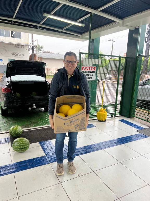 Companheiros do clube estiveram no Centro de Educação Infantil Municipal Ciranda da Criança, com a doação de frutas, para a realização da festa de confraternização do Dia da Criança. A escola atende 760 crianças do município de Chapecó.