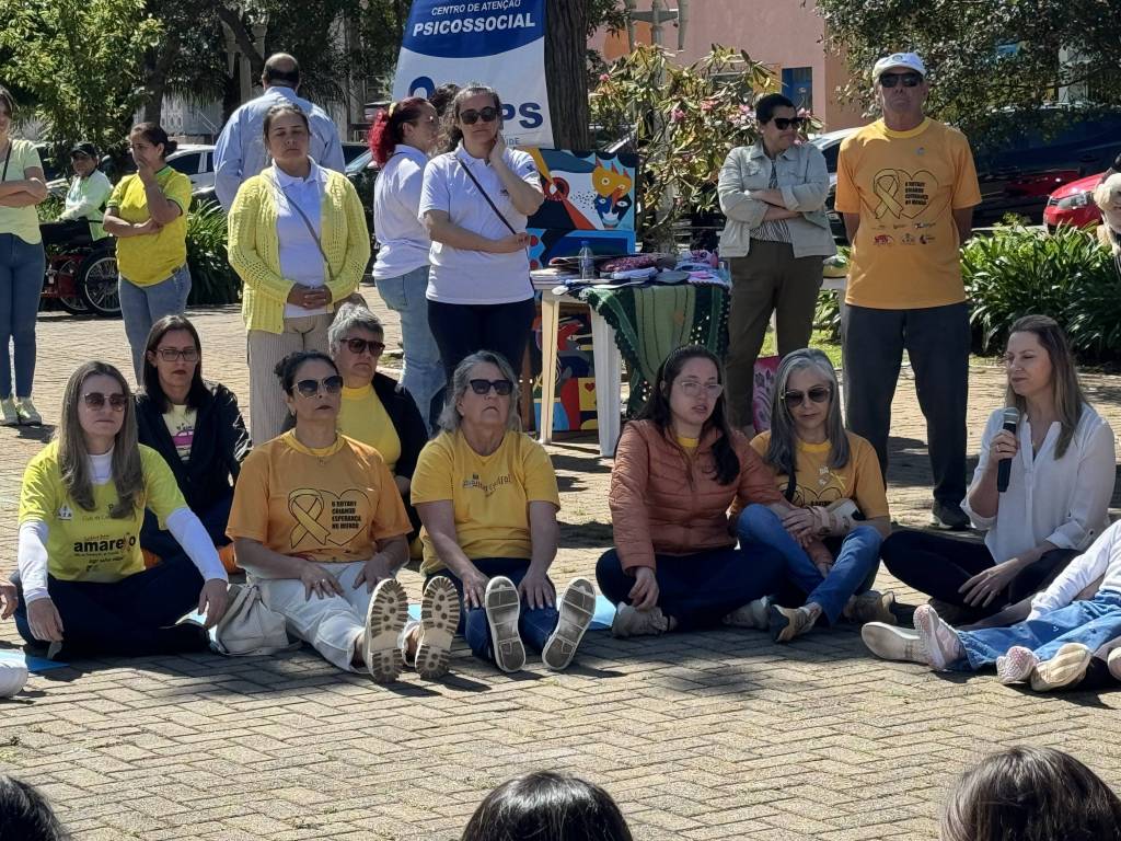 No sábado dia 28 de setembro, realizamos o evento na praça Lauro Muller de conscientização e mobilização da comunidade para a importância do projeto Setembro Amarelo, realizando atividades de meditação e reflexão sobre a vida, alongamento com profissional de educação física, finalizando com uma caminhada com distribuição de materiais informativos.