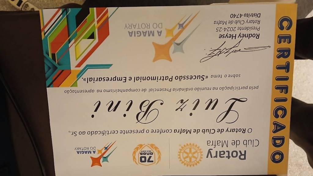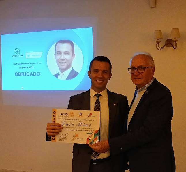 A 14ª Reunião Ordinária foi abrilhatada com uma palestra proferida pelo Sr. ALUIZ BINI, especialista em Planejamento Financeiro e Familiar, com o tema " SUCESSÃO EMPRESARIAL E FAMILIAR ", segindo-se na sequencia jantar e companheirismo.