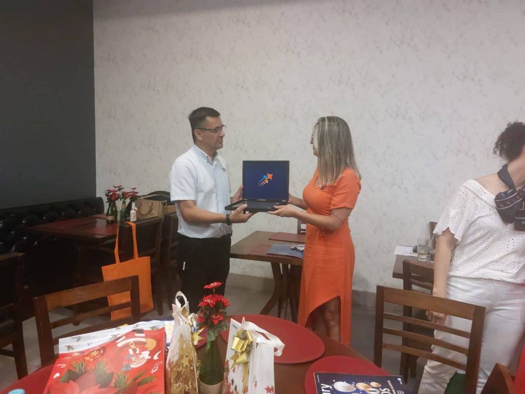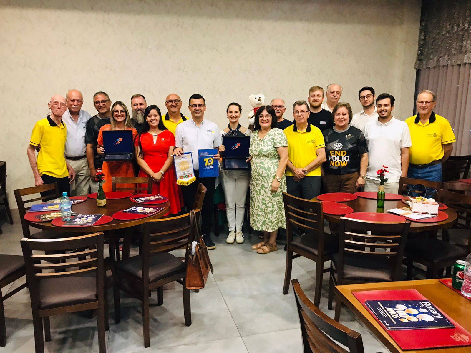 Na mesma oportunidade a Presidente do Rotary Club de Concórdia, Kelly Cristina Mazzocco, fez a entrega da flâmula do clube para o Presidente José Torrez do Rotary Club de Encarnación, bem como, a revista e o pin comemorativos dos 70 anos do Rotary Club de Concórdia a todos os visitantes, que após a reunião participaram de um jantar de confraternização no restaurante 29 de Julho.