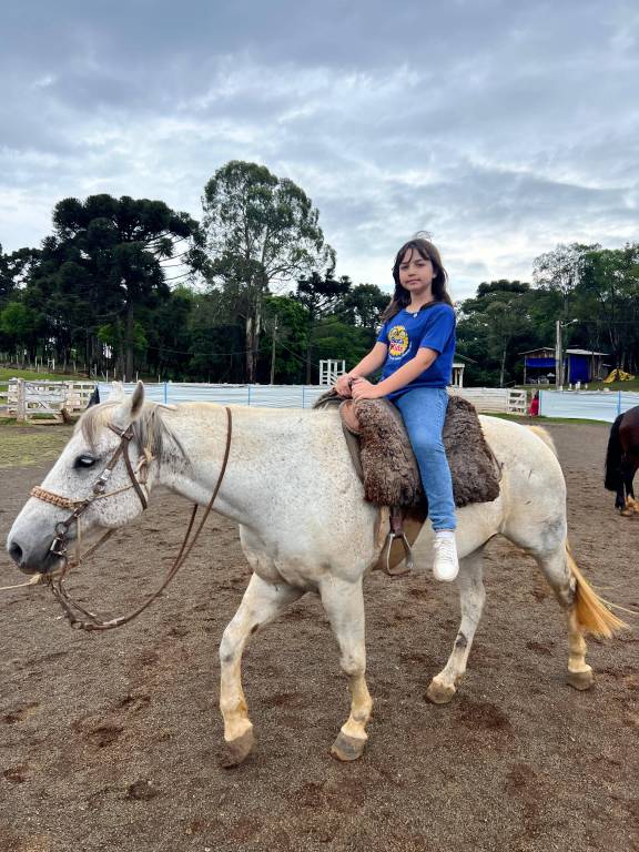 O dia também foi repleto de atividades ao ar livre, como tirolesa e uma divertida experiência com mangueira e alvo, promovida pelos Bombeiros, além de passeios a cavalo. Tudo isso em um ambiente acolhedor, longe da agitação urbana, no CTG Querência do Chimarrão, que ofereceu o espaço perfeito para essa jornada especial.