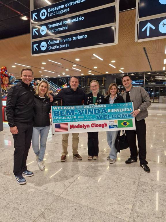 Ao mesmo tempo, o Rotary Lages Alvorada tem a honra de acolher a jovem Madelyn Clough, vinda dos Estados Unidos, que passará a residir em Lages durante o próximo ano. Madelyn será recebida por famílias anfitriãs da cidade e terá a oportunidade de conhecer de perto a cultura, os valores e a hospitalidade brasileira.
